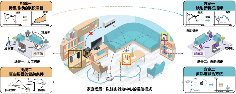 针对“部署难”的问题,团队篡改性地将视力投向了家庭中日益栽培的扫地机器东说念主,将其滚动为环境信息的“自动汇注员”。在其日常清扫建图的经过中,系统可同步自动构建家庭物理空间舆图与Wi-Fi信号舆图,并能以0.1米的精度自动识别纪录路由器、智能音箱等竖立的位置。用户只需让扫地机器东说念主平常清扫一次,即可完成系统运滚动,透顶省去了专科装配和手动测量的缺乏。